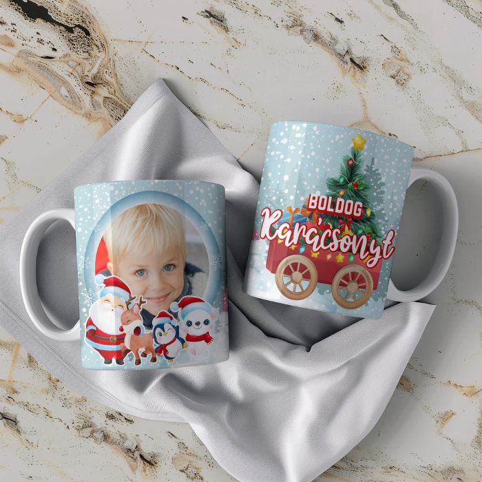 Egy különleges, személyre szabható ajándék, amely tökéletesen illik az ünnepi hangulathoz. A bögre világoskék árnyalata frissességet és finom eleganciát sugároz, miközben gyönyörűen kiemeli a választott fényképet vagy grafikát. Porcelán alapanyaga biztosítja a tartósságot, míg a minőségi nyomtatás garantálja, hogy a személyes üzenet vagy emlékezetes kép sokáig örömet szerez majd a használójának. Ideális forró italokhoz, így akár egy téli kakaóhoz, kávéhoz vagy teához.